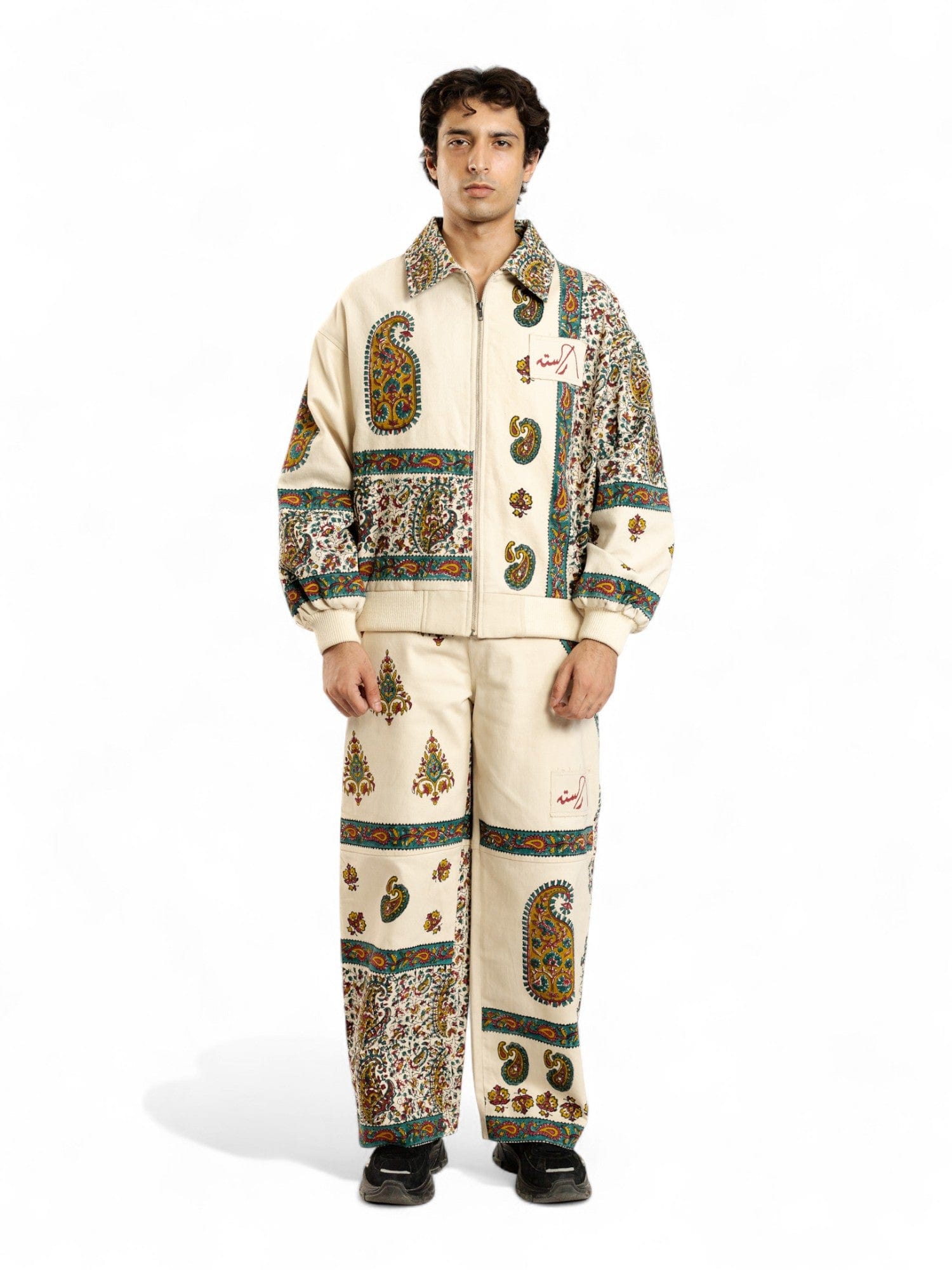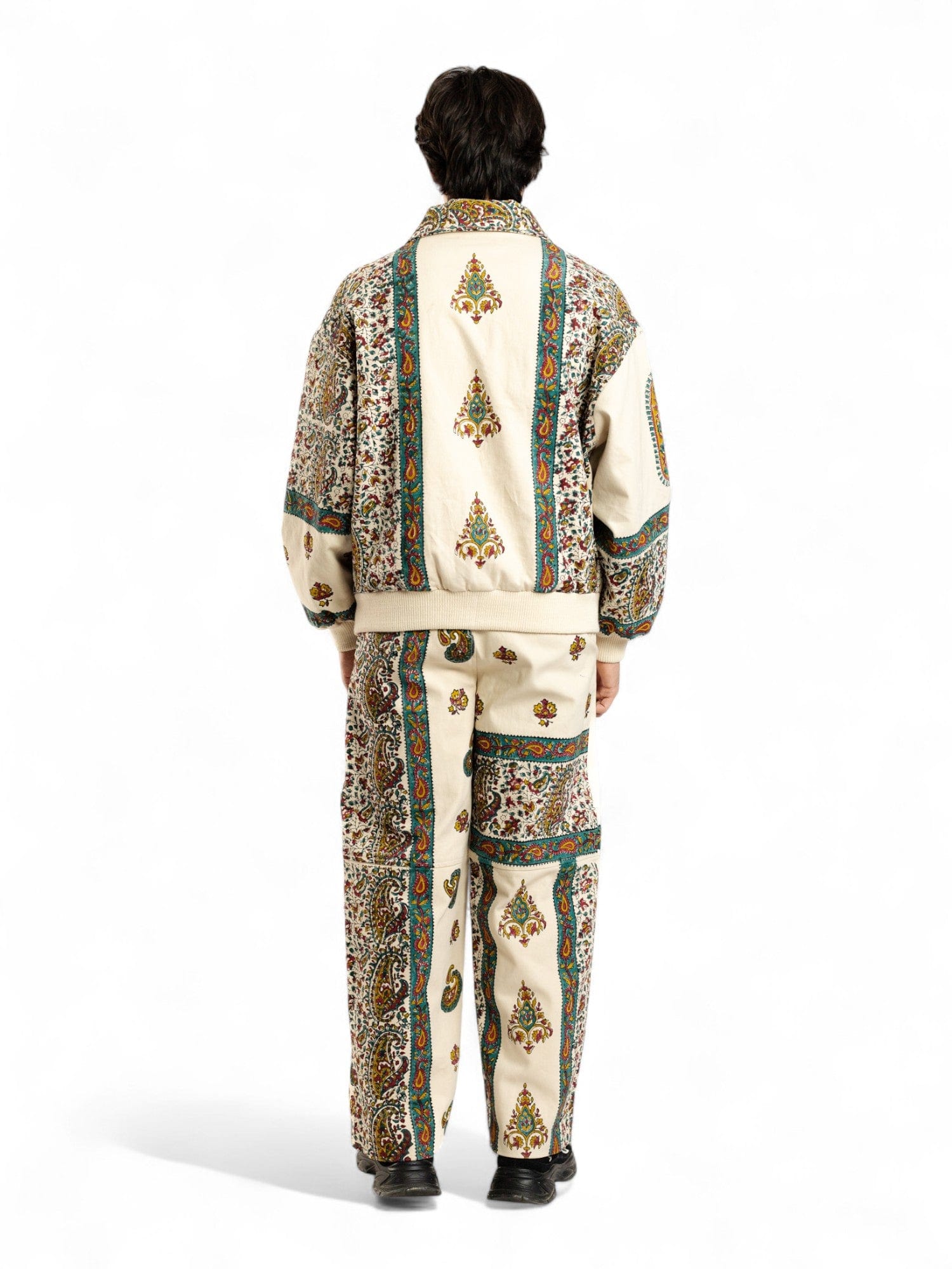 "95" BEIGE BLOCK PRINT DENIM PANTS