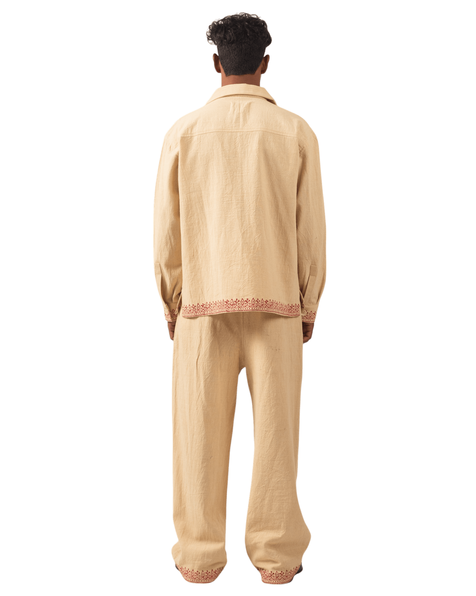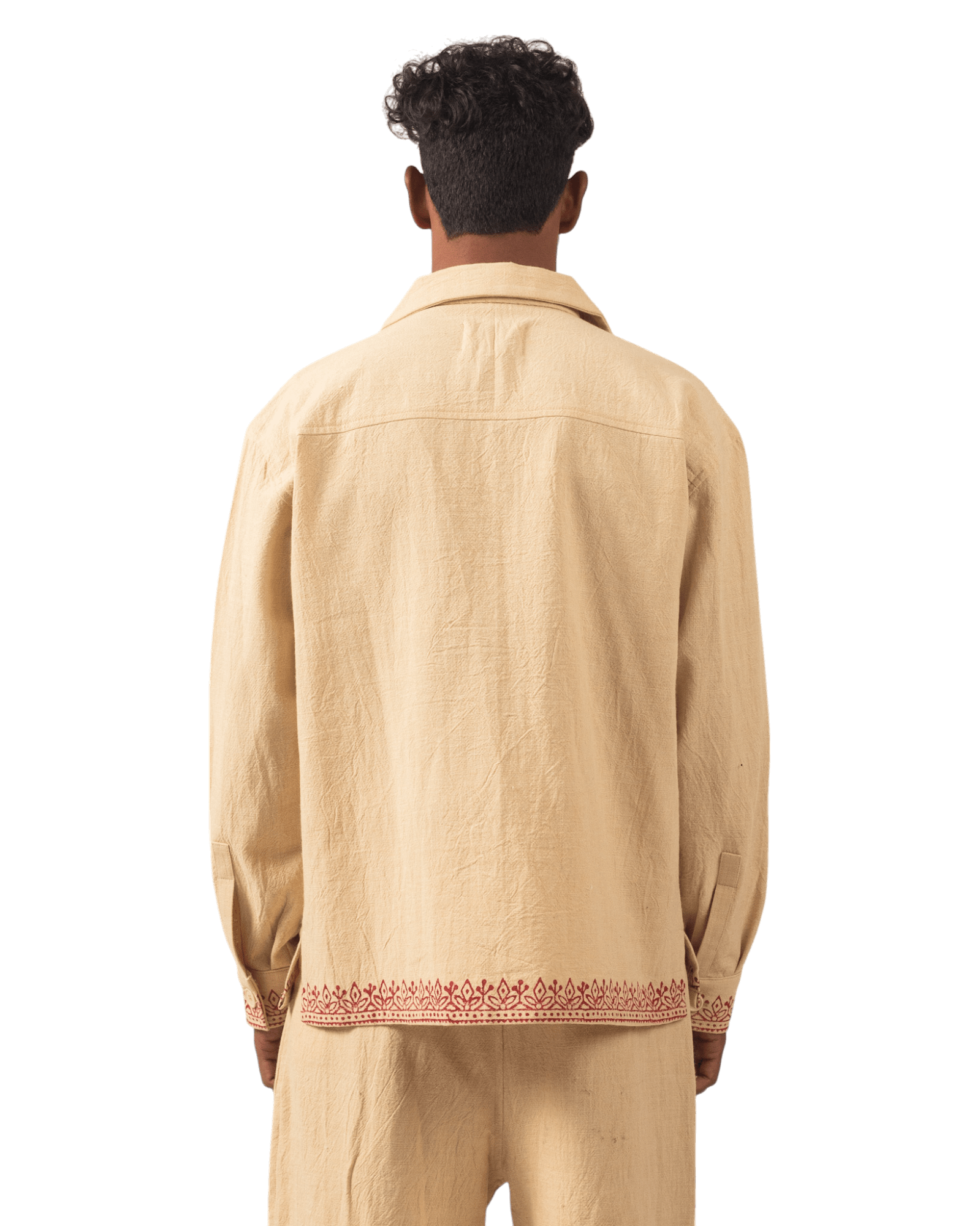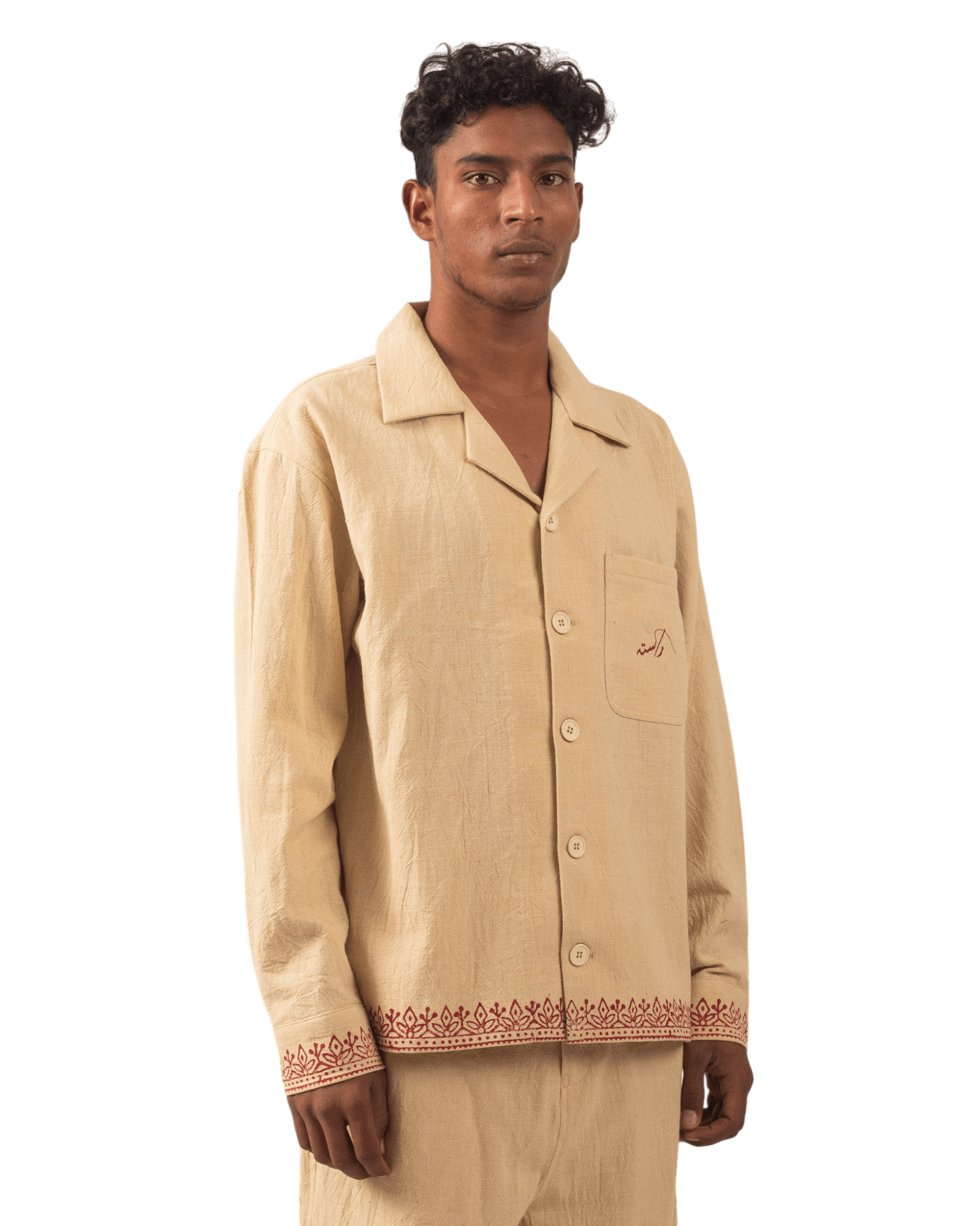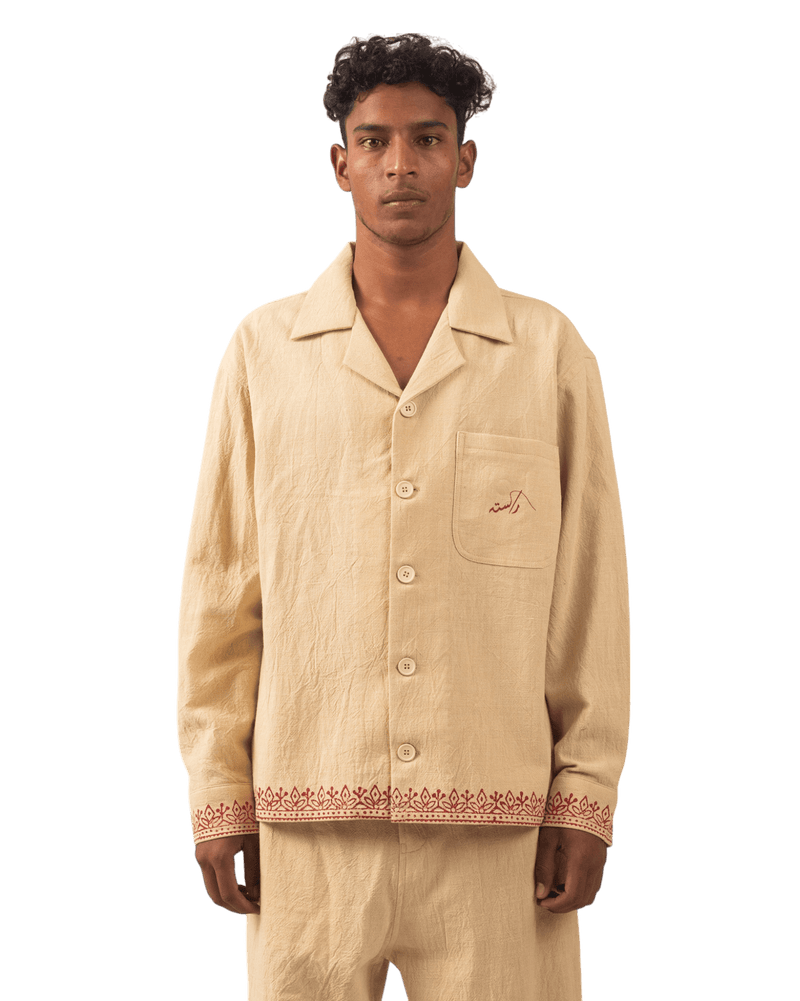 KHAKI BLOCK PRINT KHADDAR BUTTON DOWN
