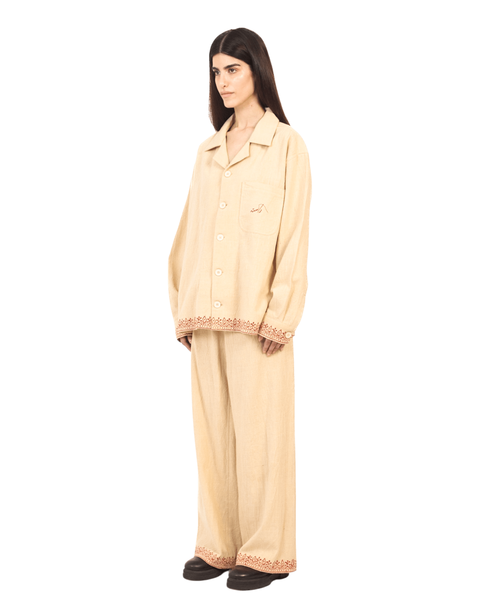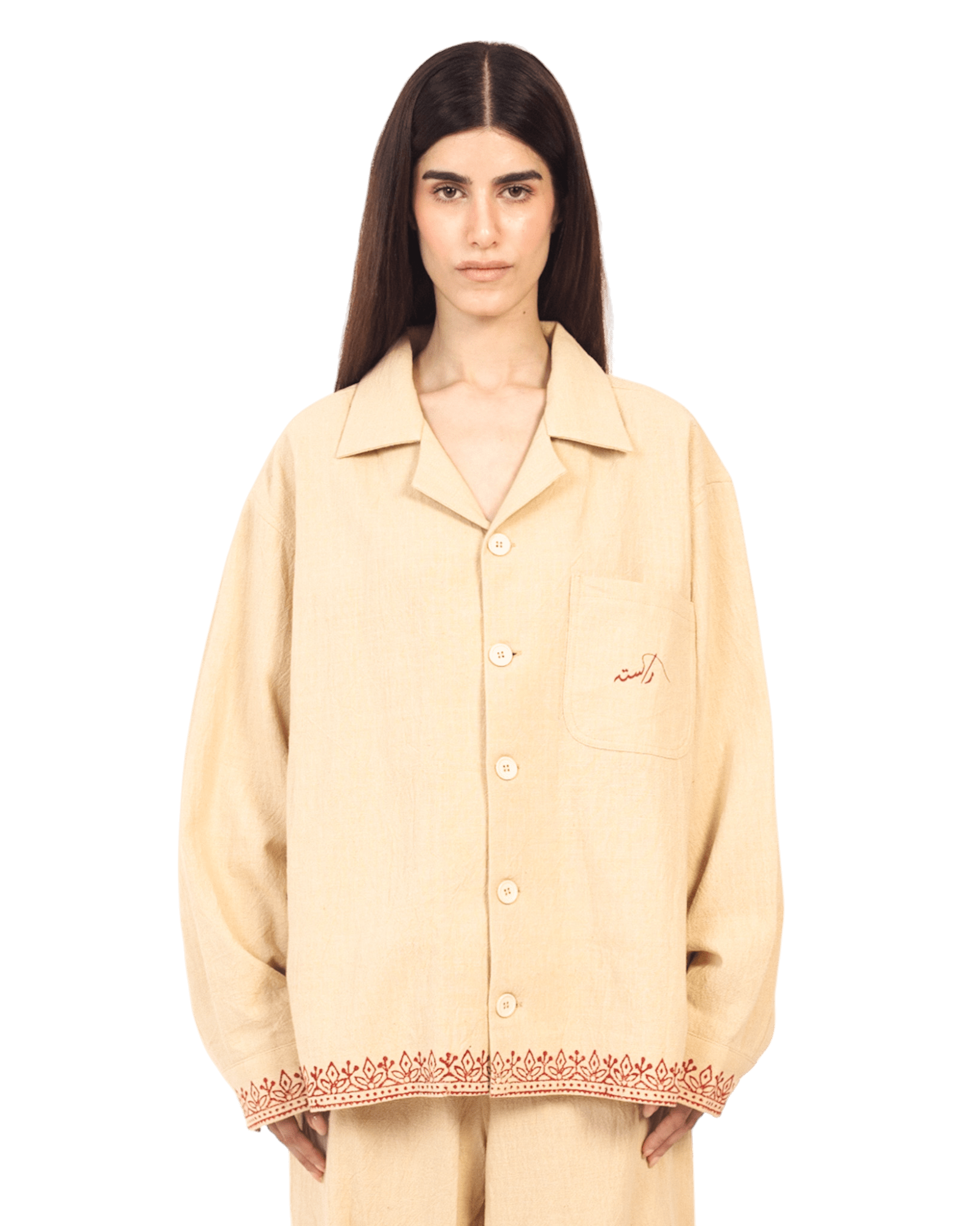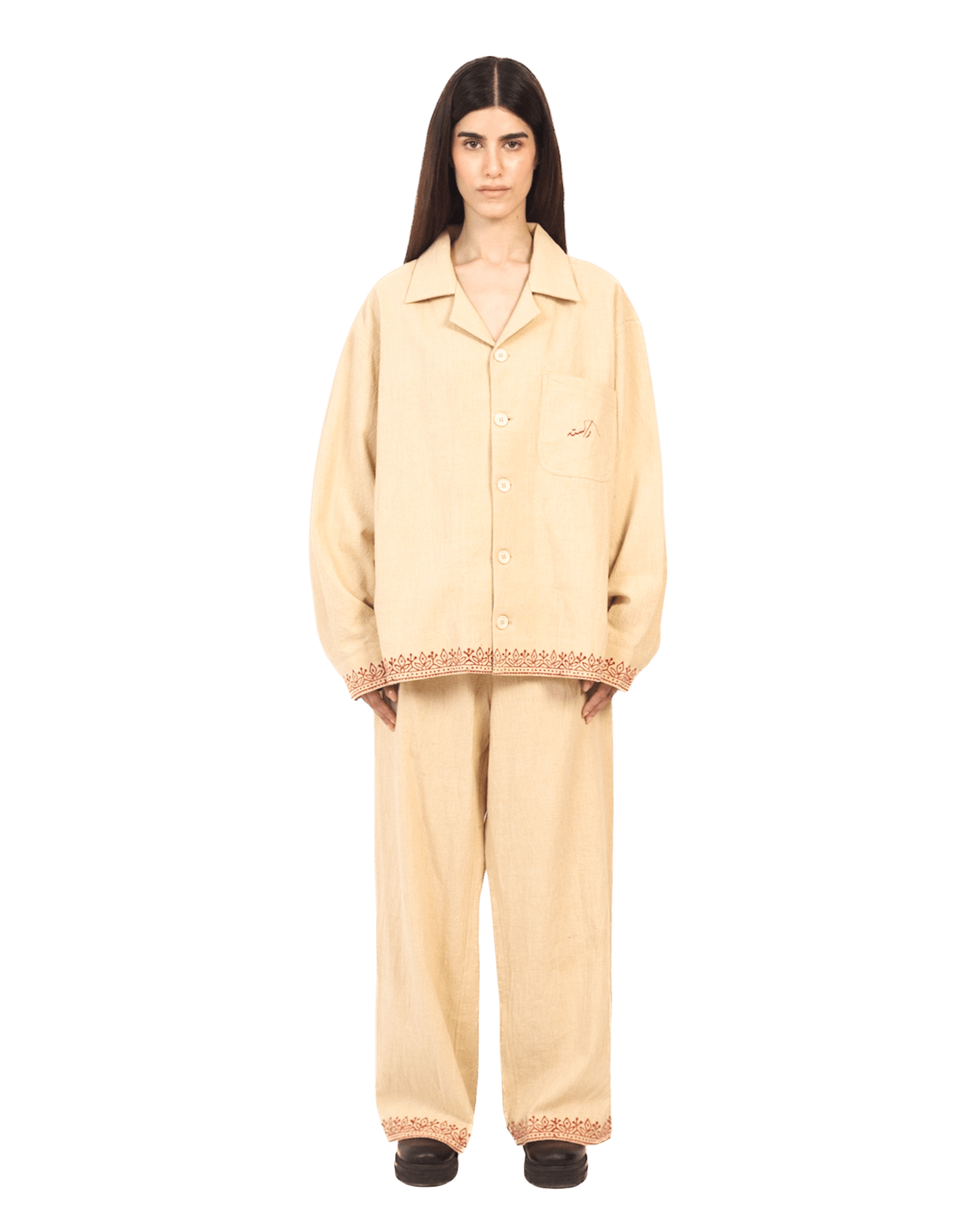 KHAKI BLOCK PRINT KHADDAR BUTTON DOWN