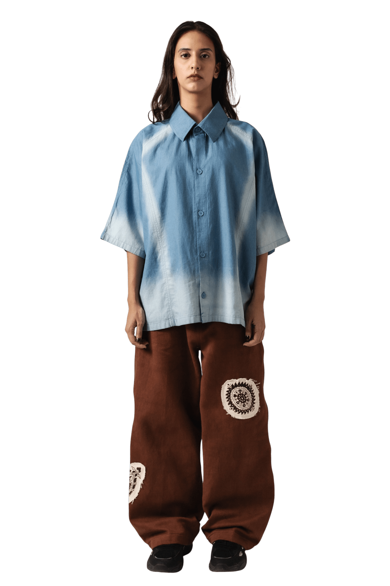 Brown Block Print Denim Pants