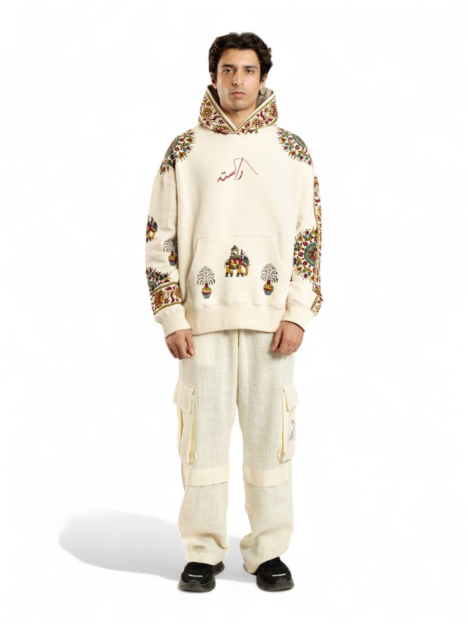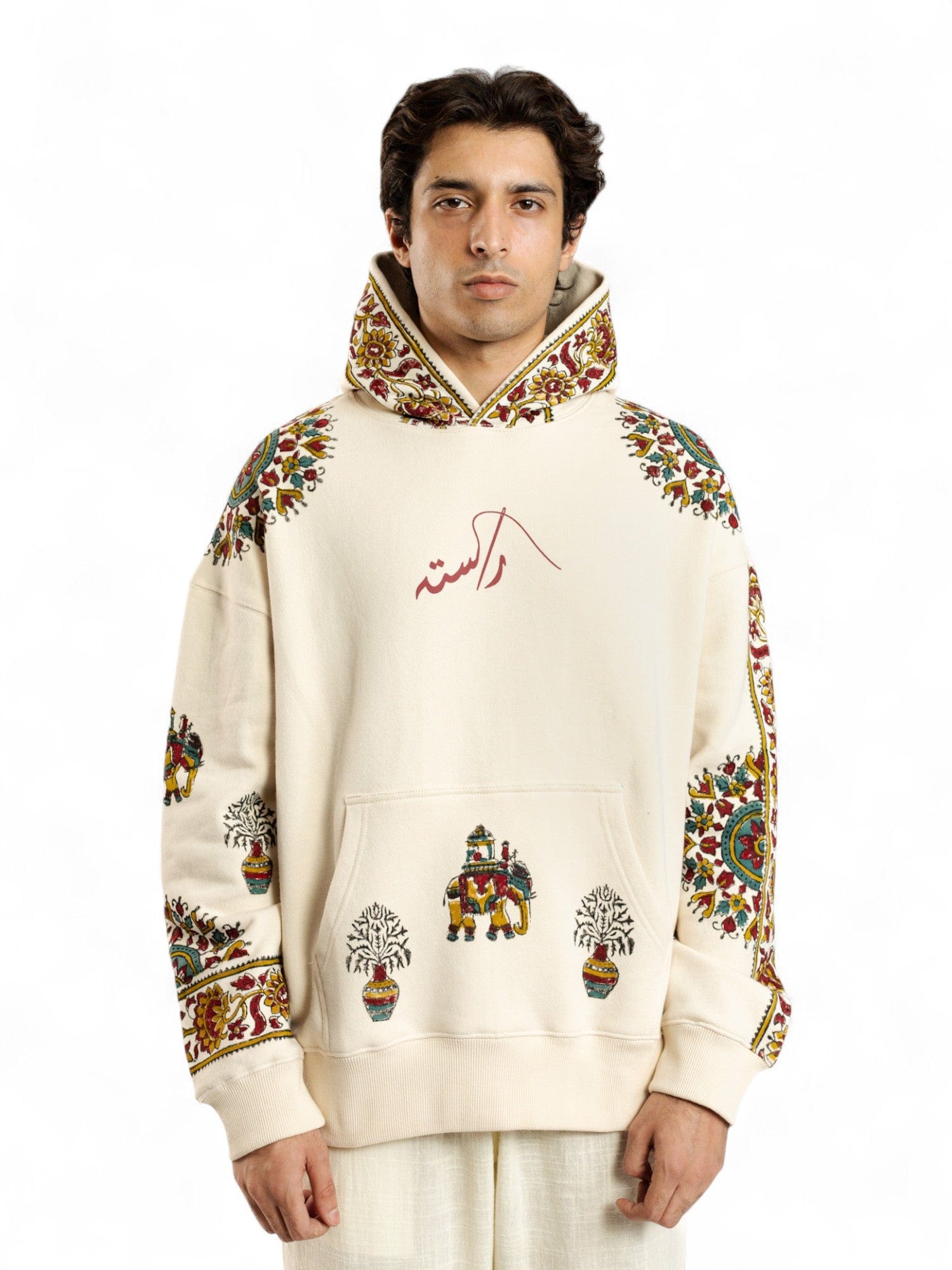 BEIGE KALAMKAAR HOODIE (V7)