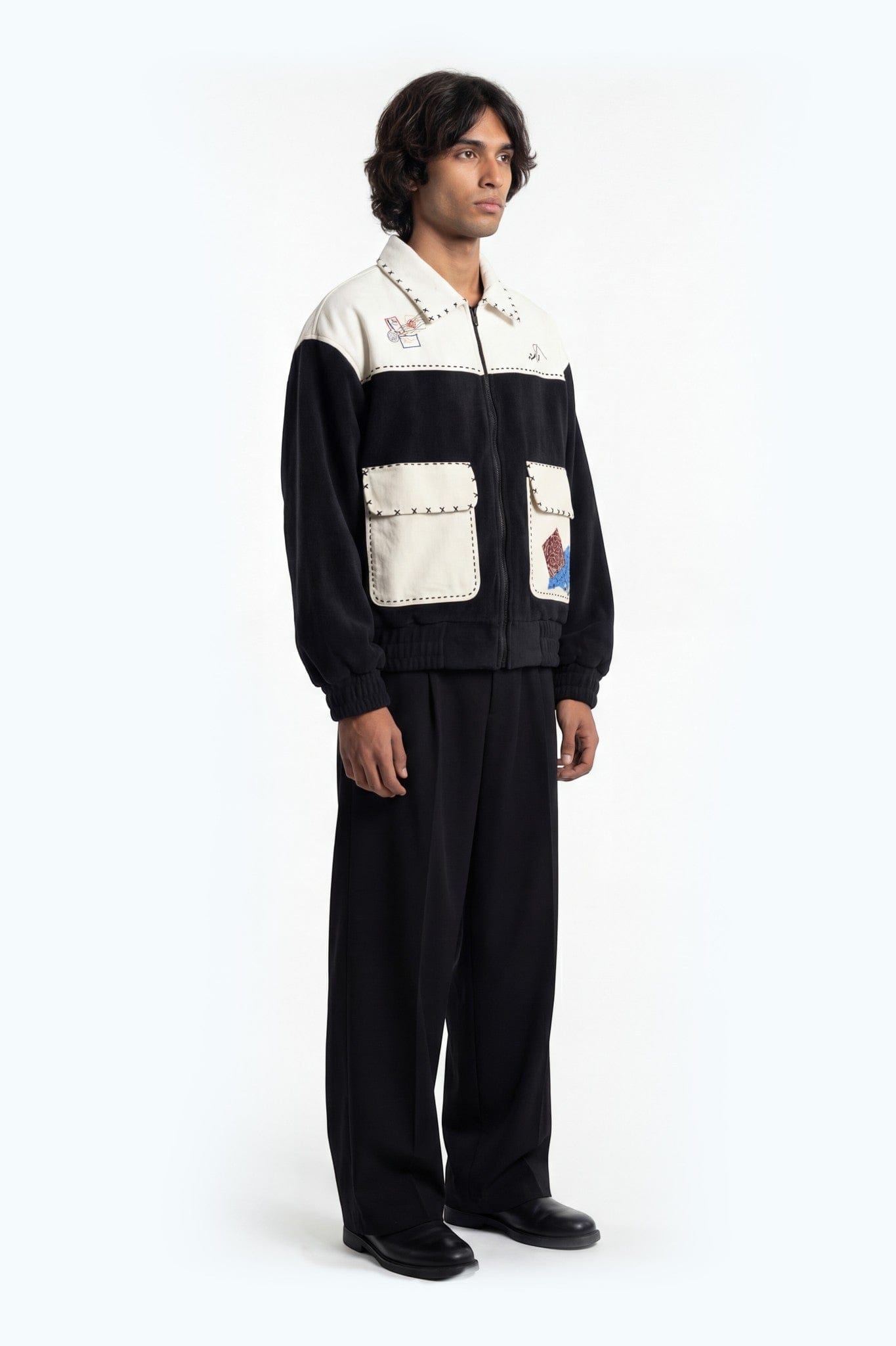 Designed as a heavyweight outer layer, this jacket blends traditional textile references with modern street structure. It’s functional, statement-driven, and built for layering.