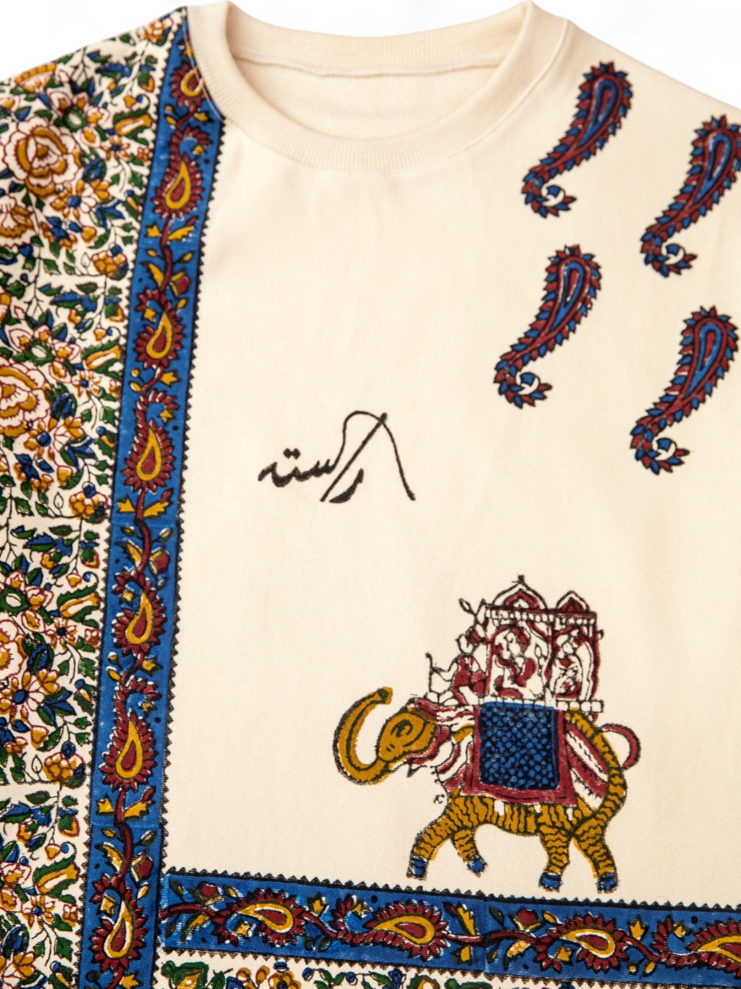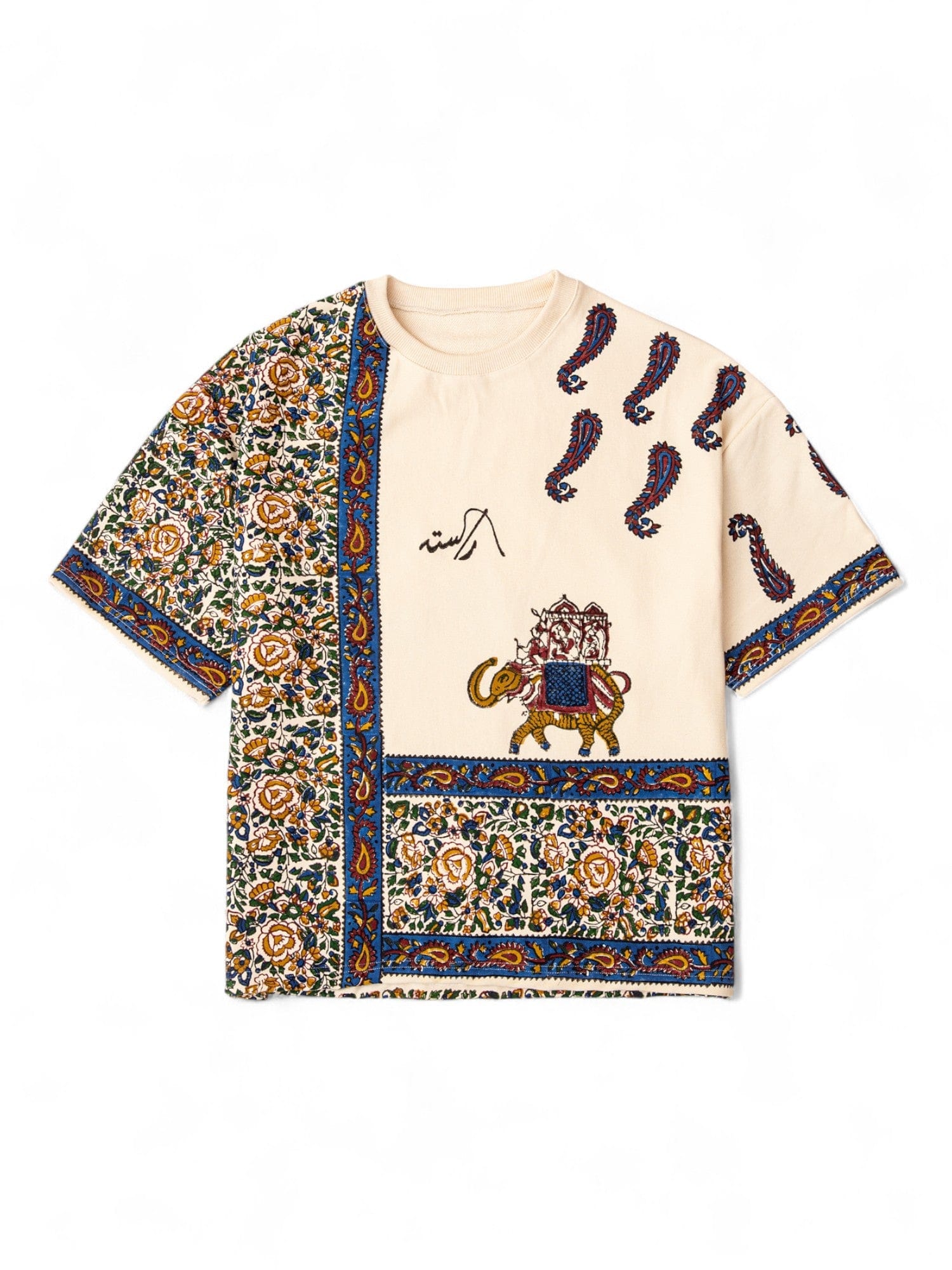BEIGE BLOCKPRINT KALAMKAAR T SHIRT