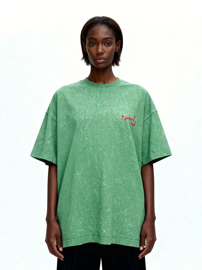 Crafted from soft cotton jersey, it features an acid-washed finish for a lived-in look. The back showcases screen-printed and puff-printed graphics inspired by everyday Pakistani visuals — from truck art to typography — while the front keeps it minimal with a clean Urdu Rastah logo. The relaxed silhouette and cultural references create a blend of streetwear and heritage aesthetics.
