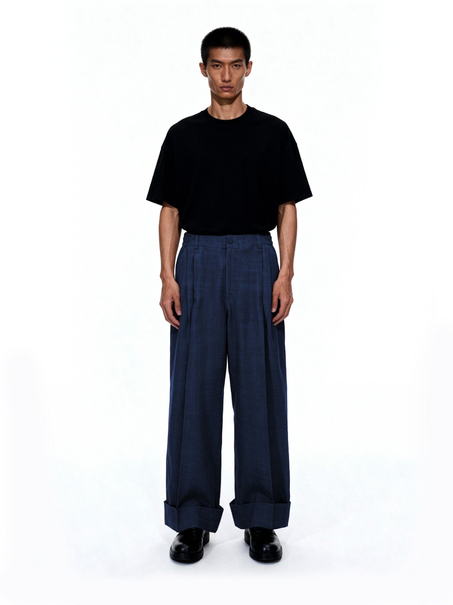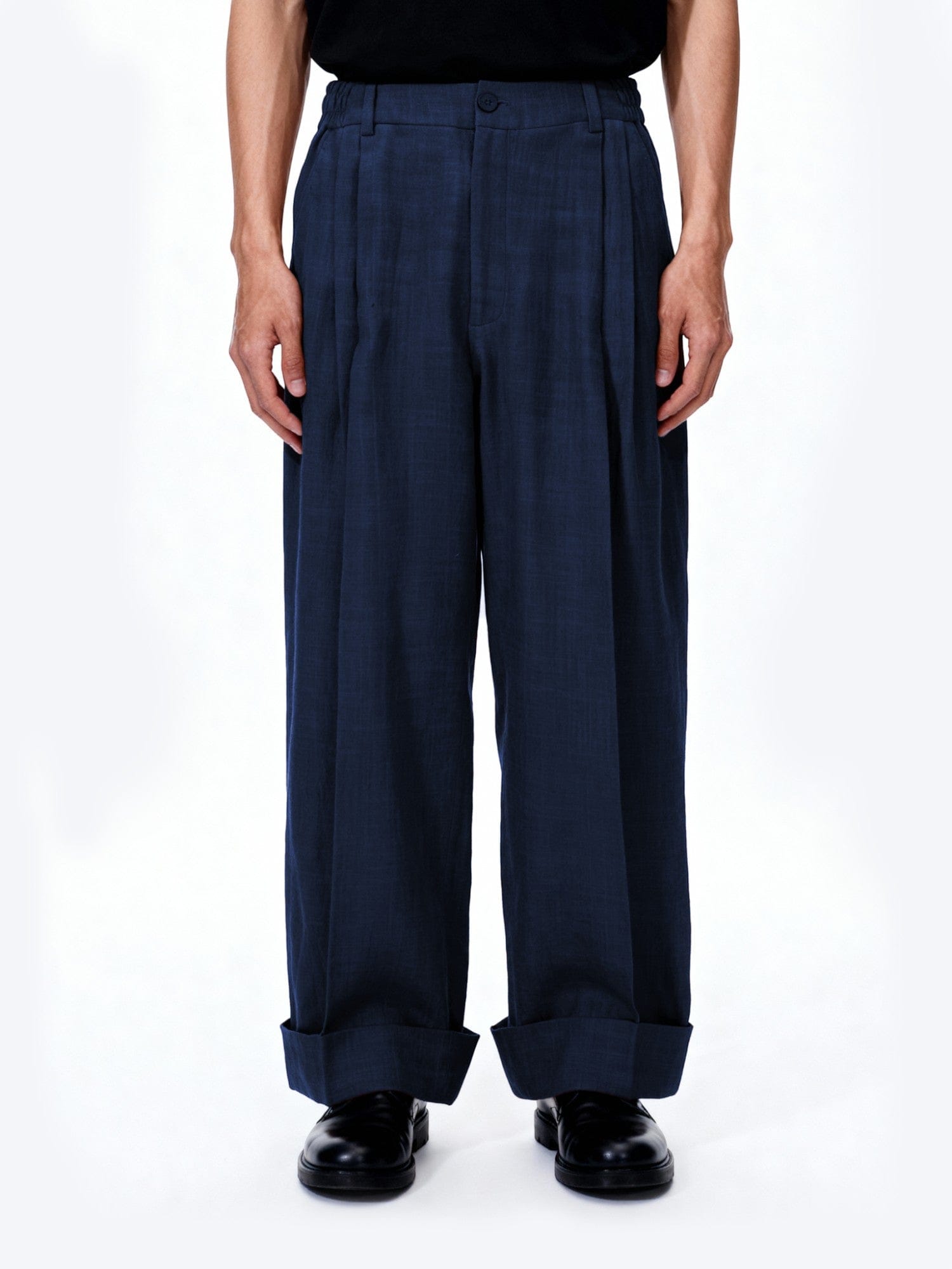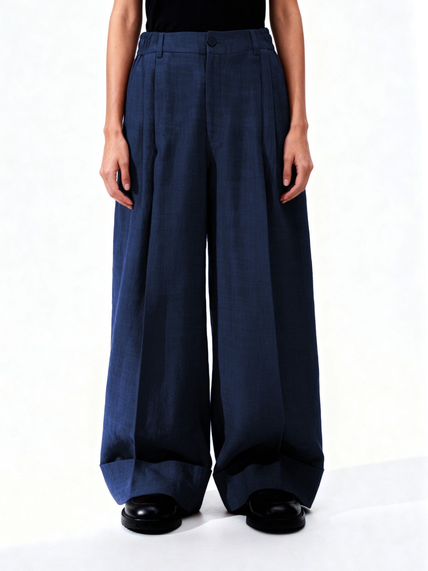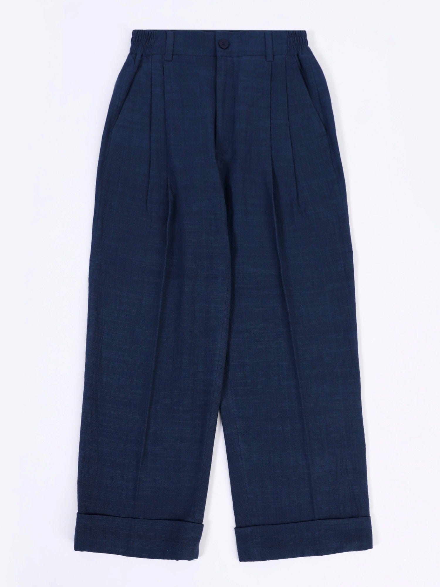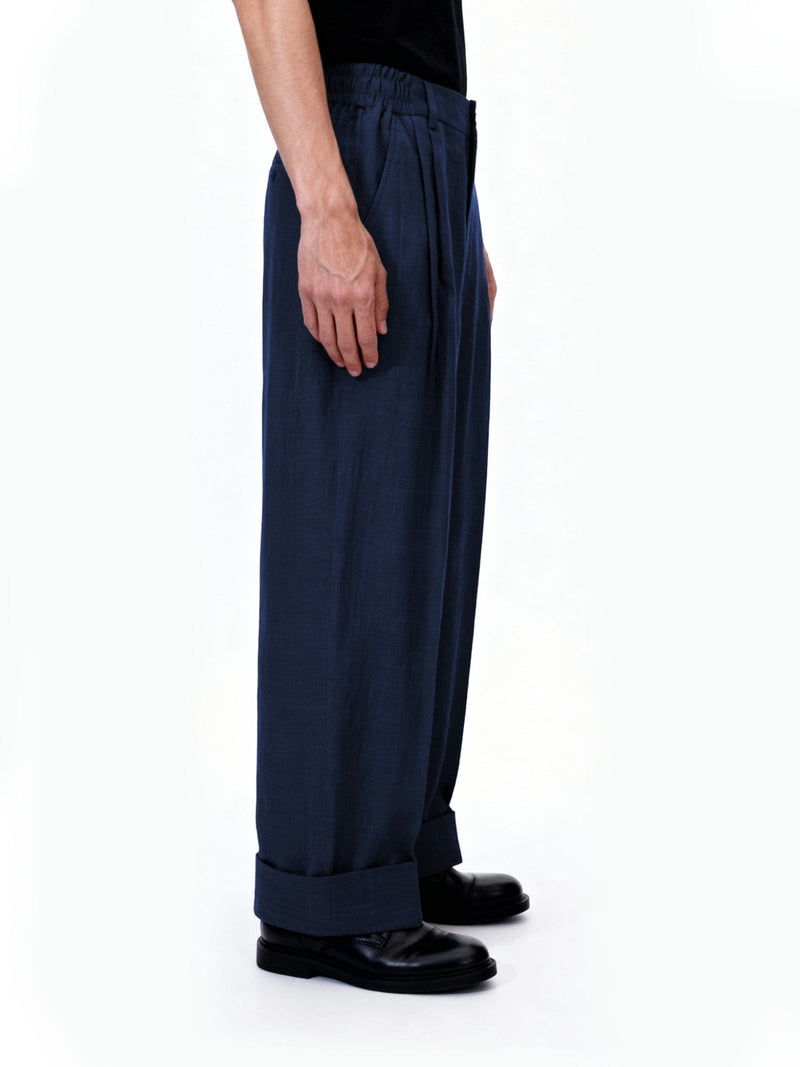 Blue Double Pleated Khaddar Trousers