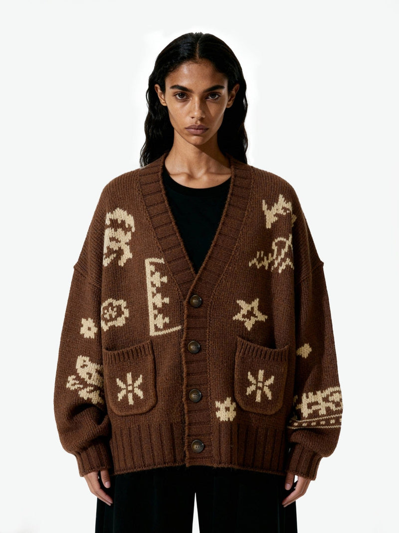 The Brown Cardigan blends artisanal motif work with everyday wearability. Crafted from a blend of acrylic, nylon, and woolen thread, it features all-over floral and paisley motifs inspired by regional embroidery traditions.