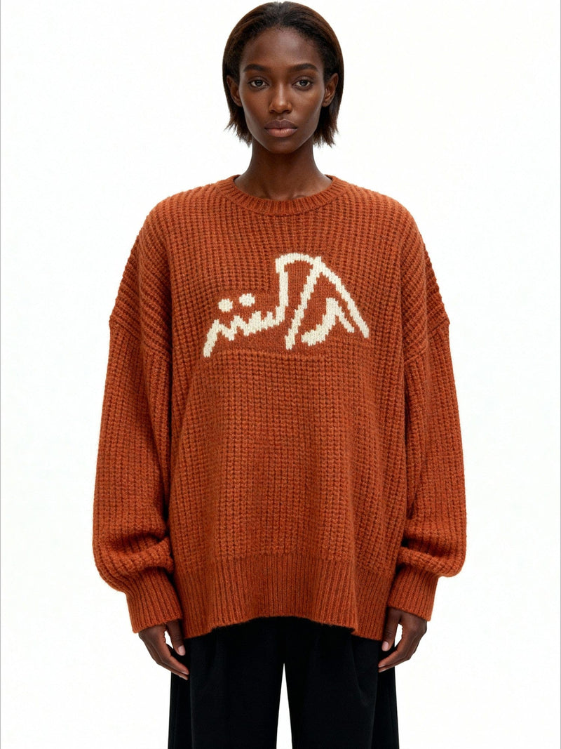 The Cognac Made in Pakistan Sweater captures warmth and identity through material and color. Crafted from a blend of acrylic, nylon, and woolen thread, it features the Urdu “Made in Pakistan” motif in contrast tone across the chest.