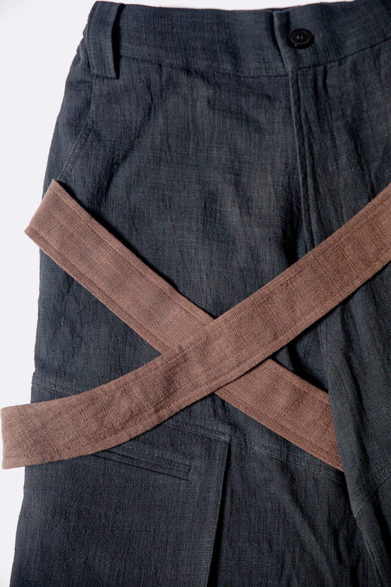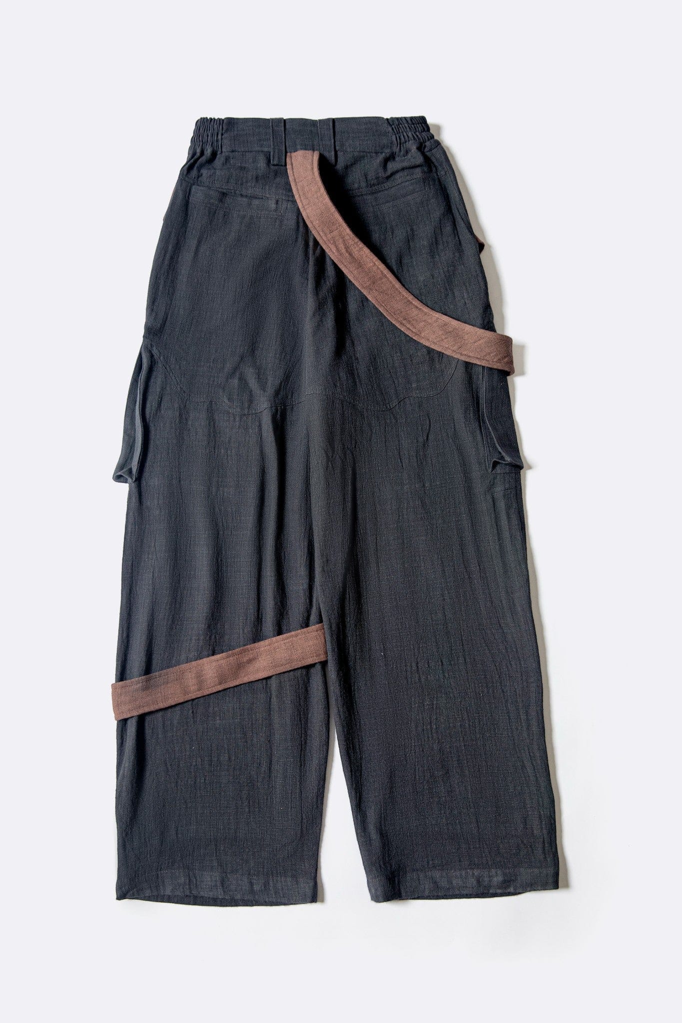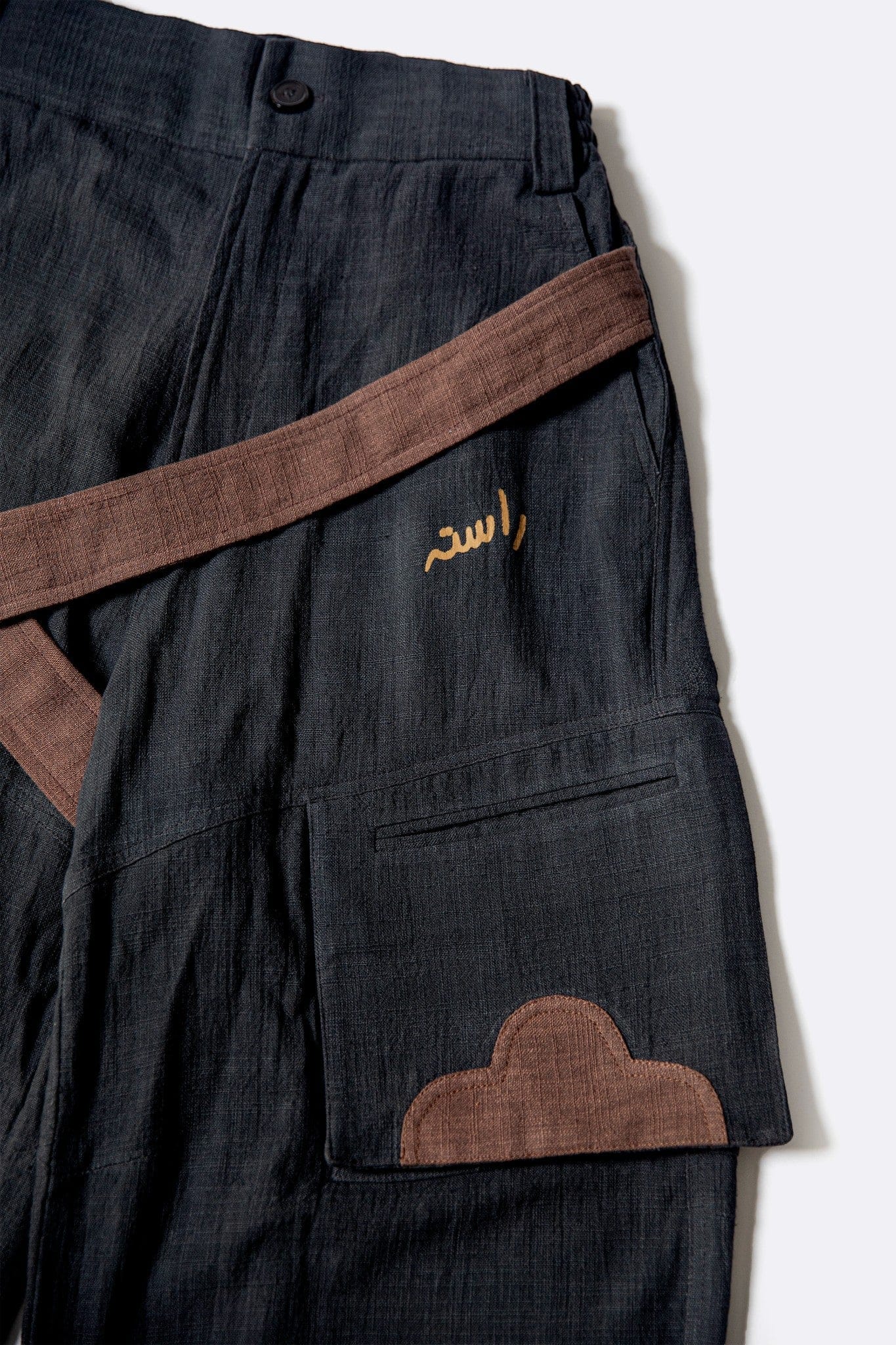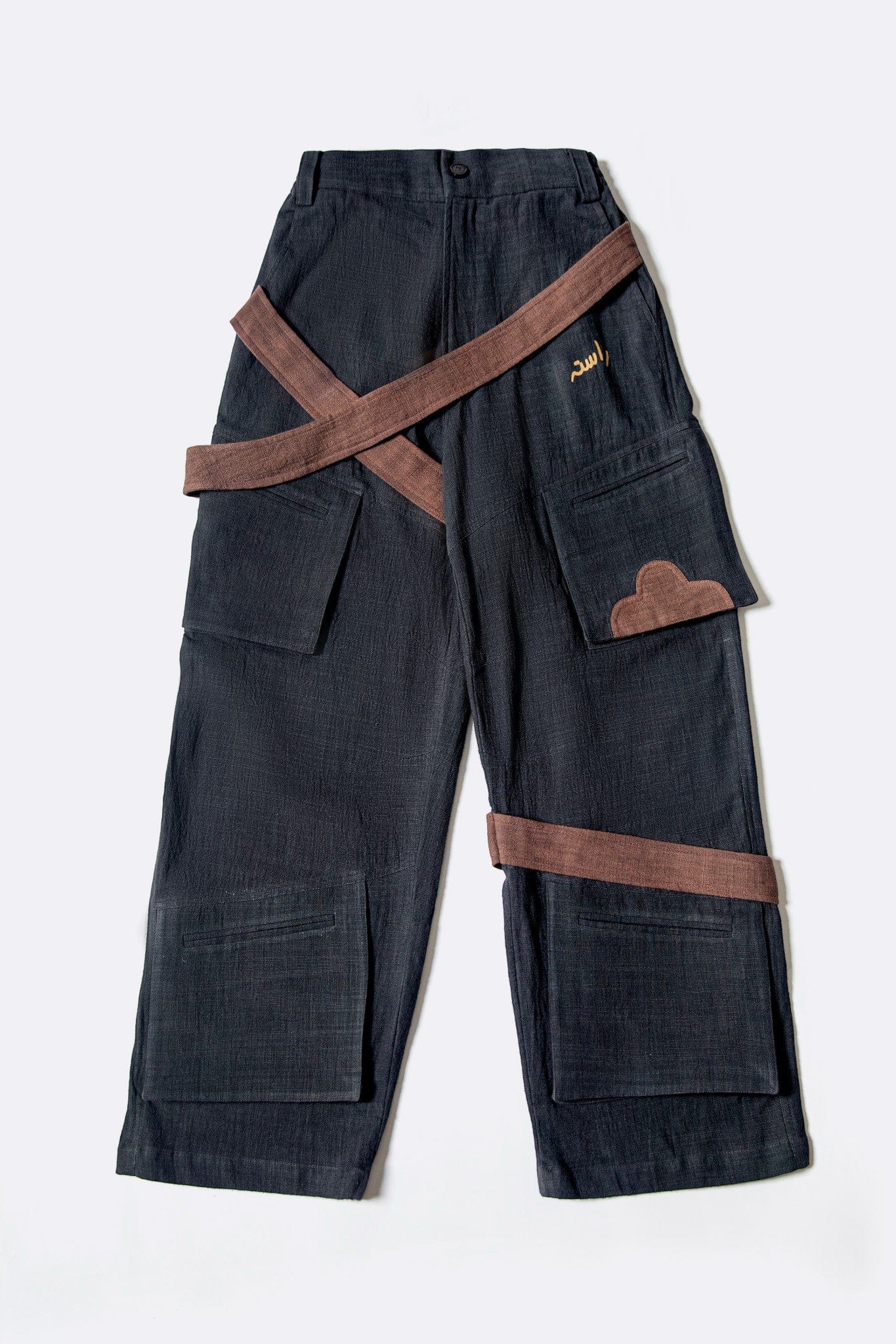 Arched Passage Pants are crafted in khaddar fabric, drawing from architectural arches and transitional spaces. The curved paneling and contrast straps create a sense of movement, while the barrel fit keeps the silhouette structured yet relaxed. Designed for utility and comfort, finished with cargo detailing and elasticated belt sides.