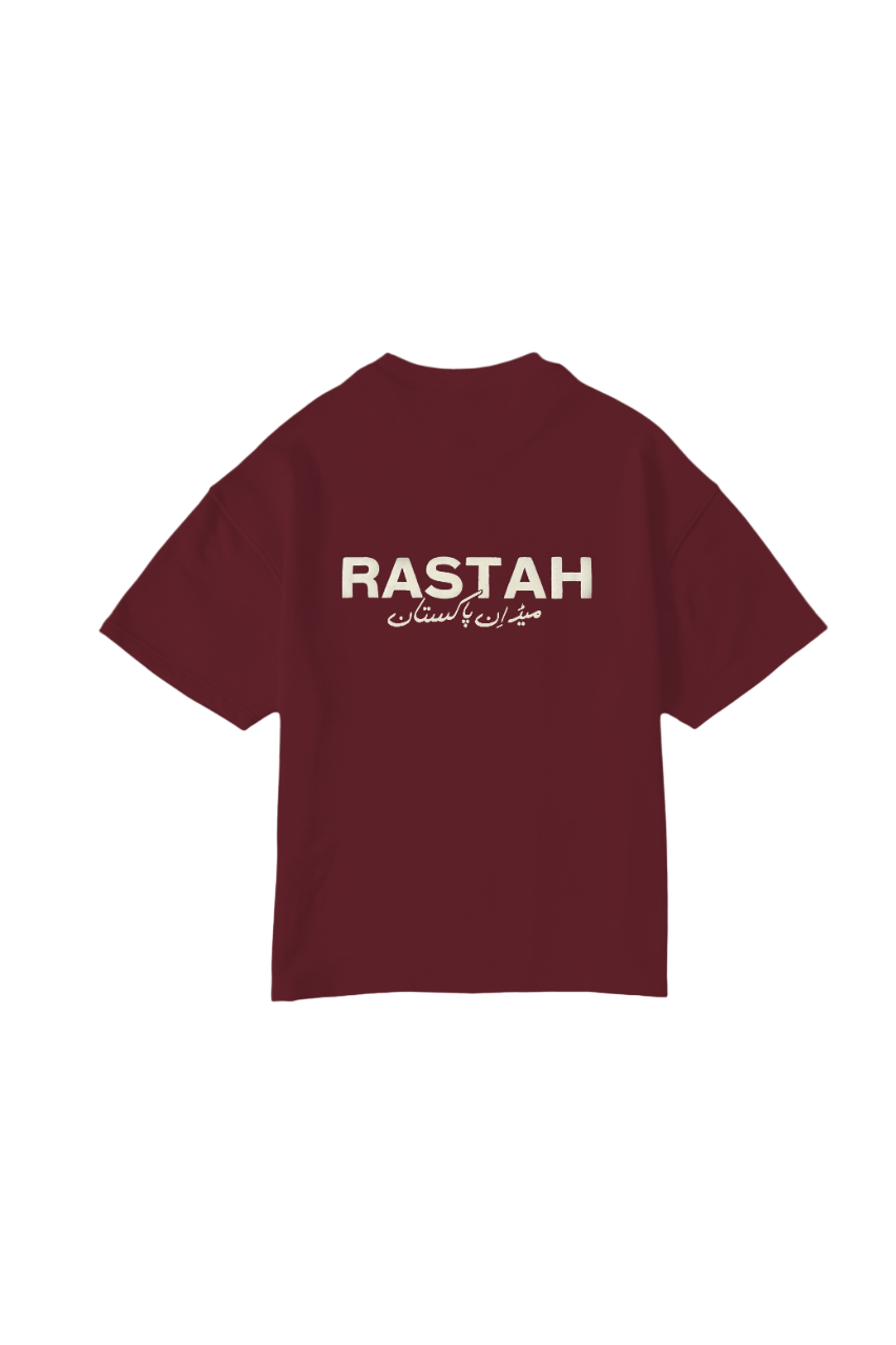 Crafted with meticulous detail, this Cherry T-Shirt discreetly showcases the Rastah emblem on the front, accompanied by the new "Made in Pakistan" inscription elegantly displayed in Urdu typography on the back. Constructed from 220 GSM cotton terry fabric, this shirt boasts a mock neck collar and an oversized fit, ensuring a relaxed yet stylish demeanor. Each garment is dyed to perfection, reflecting Rastah's commitment to quality and individuality.