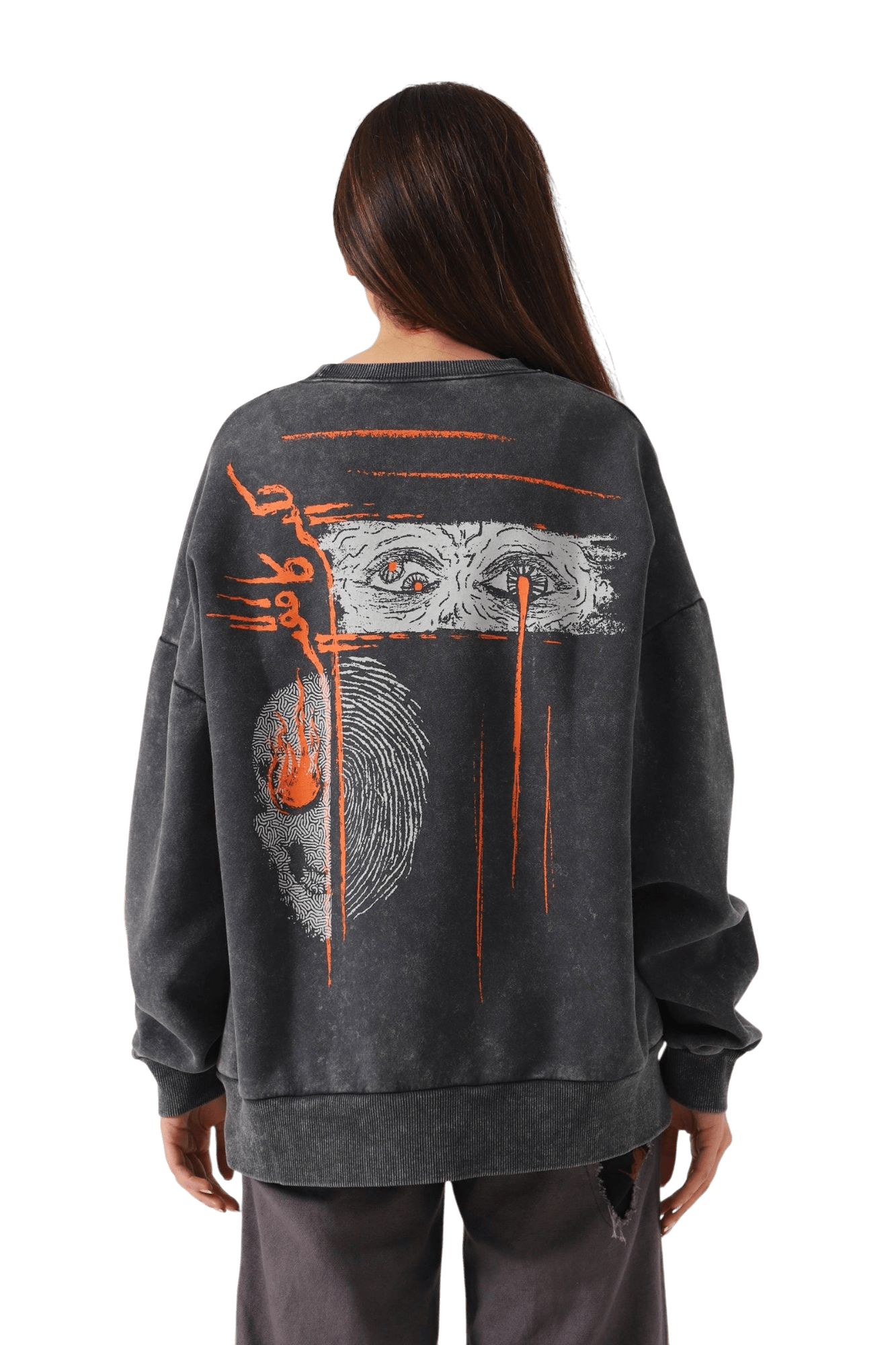 "ORDINARY" GREY ACID WASH SWEATSHIRT