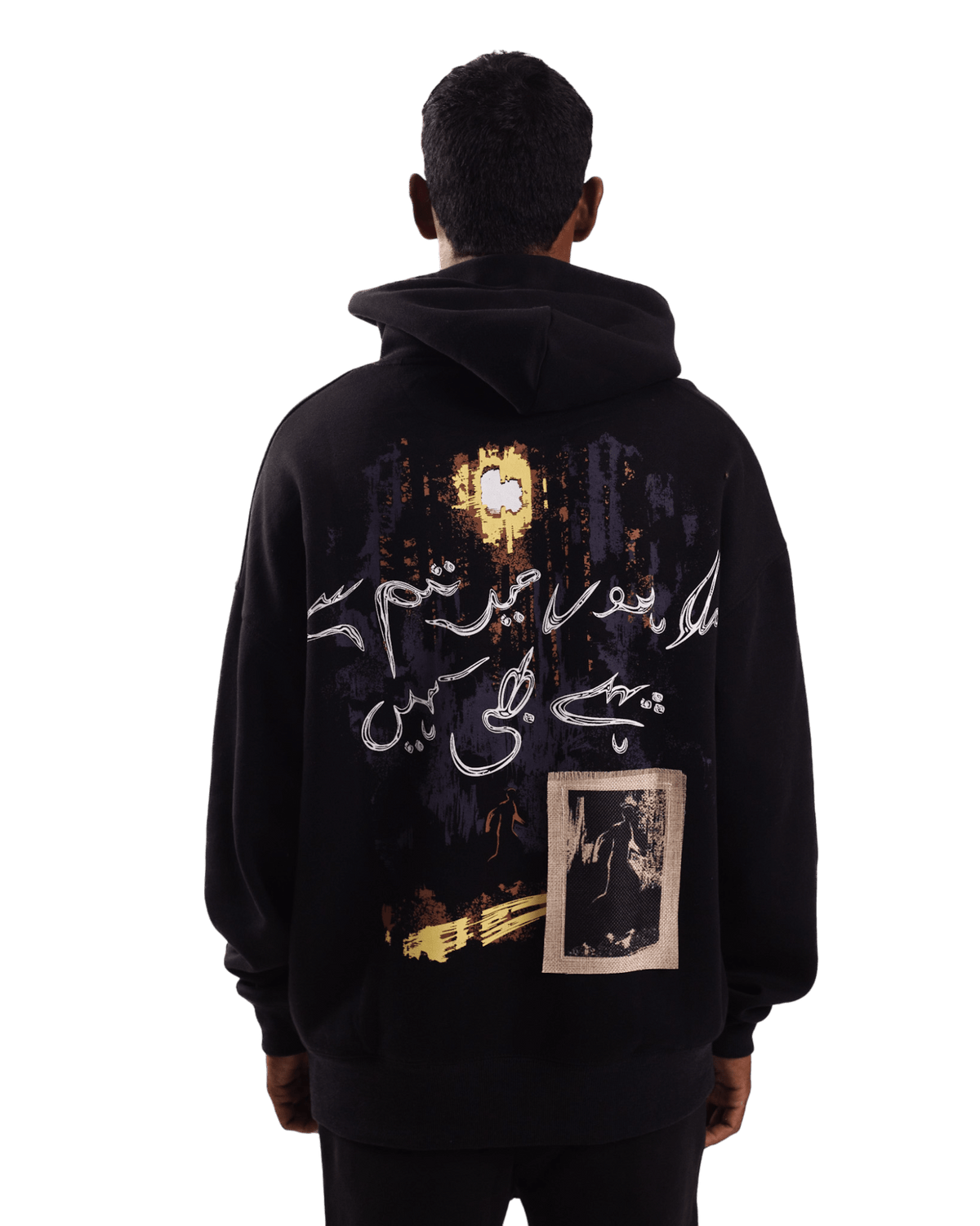Introducing our oversized hoodie from the May Capsule Collection, a perfect blend of comfort and artistry. Made from 100% cotton with a substantial 500 GSM weight, this hoodie features the May Capsule 24 Rastah logo on the front. The back showcases a striking graphic accompanied by Urdu typography reading "mila hun main tum say pehlay bhi kahin," which translates to "I've met you somewhere before," encapsulating the theme of familiar yet elusive memories.