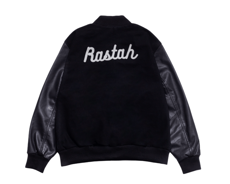 Introducing our Oversized Varsity Jacket, a standout winter essential designed for a relaxed, oversized fit. Crafted from premium fabric with leather and denim accents, this jacket features a bold laser-cut Rastah logo on both the back and front, offering a modern and edgy aesthetic. Perfect for colder days when you want to combine warmth with cutting-edge style.